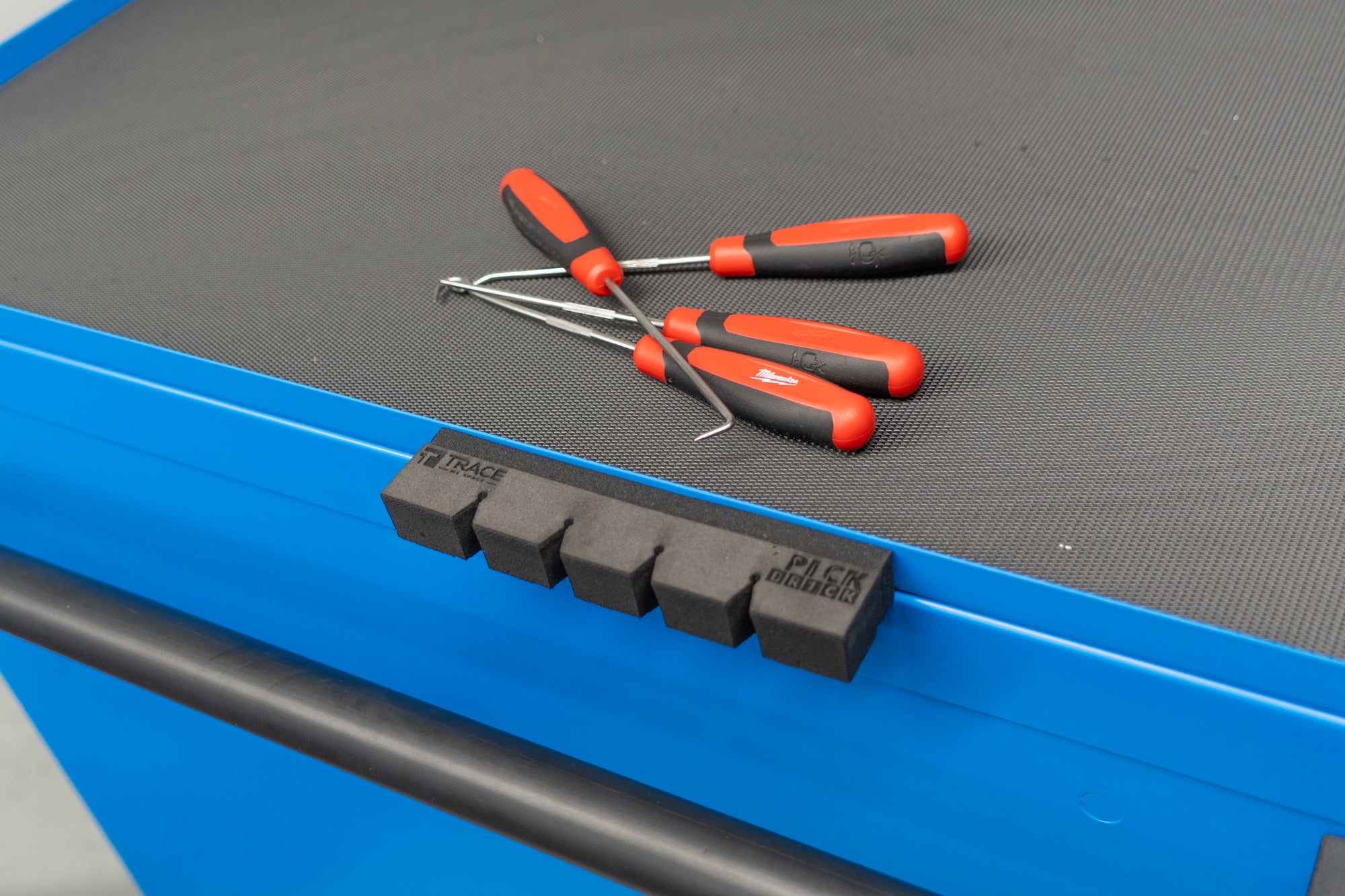Keep your picks organized, secure, and always within reach with the Pick Brick. Designed specifically to hold pick tools, the Pick Brick is made from durable foam that grips each tool snugly, preventing drops and clutter.