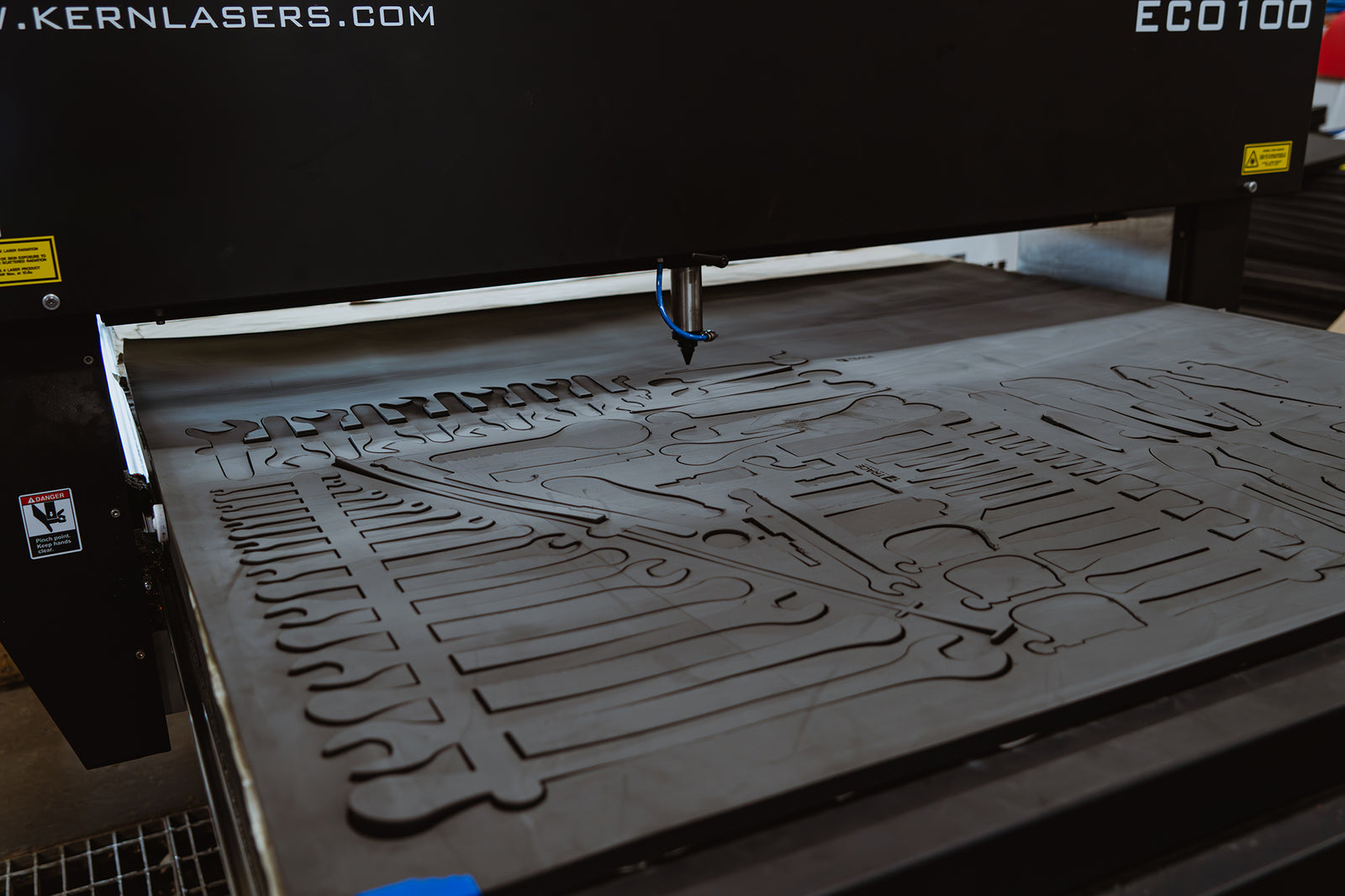 Unlike other shadow foams, our shadow foam process allows you, the customer, to make a custom layout with any tools or items in the foam. Simply lay out your drawer or case how you want it and send us a picture. Our process utilizes a laser to custom cut your tool inserts.